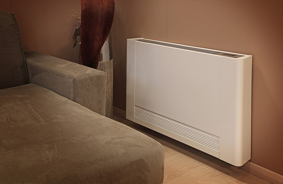 Controcorrente con tubi in rame e alette in alluminio con pellicola idrofila antiossidante; tre ranghi.